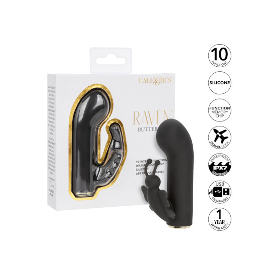 Embarque numa viagem de prazer e flirt com o Raven Butterfly, um mini massajador duplo delicadamente concebido que oferece um toque tão suave e hipnotizante como as asas de borboleta.