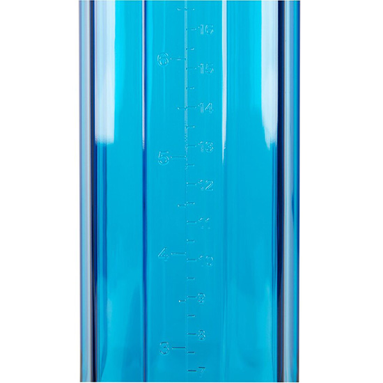 Cilindro azul transparente com escala de medição.