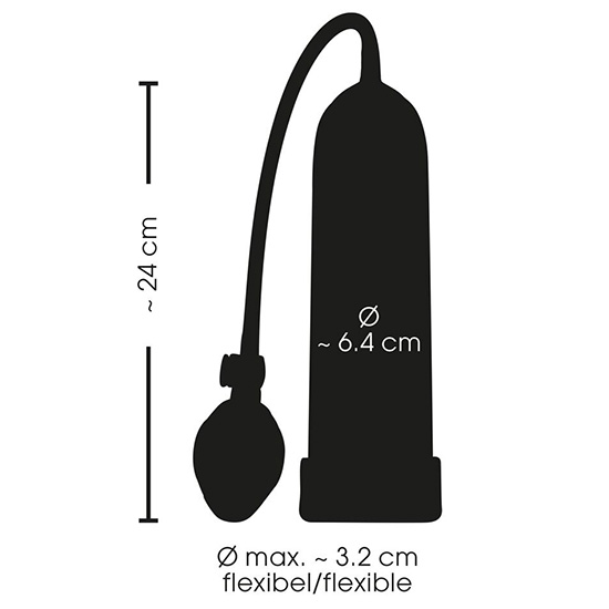 Bomba desenvolvedora peniana de potência, com cilindro azul e luva preta macia e flexível.
