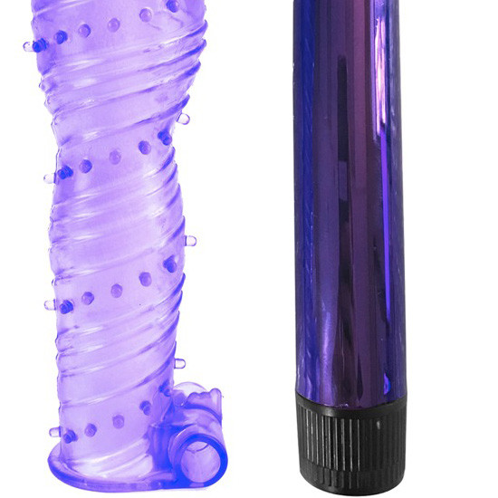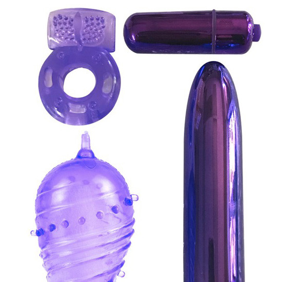 Conjunto de 4 brinquedos eróticos em tons de lilás, constituído por: