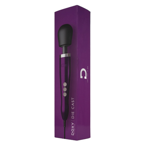 O elegante massajador de metal Die Cast da DOXY possui uma cabeça de massagem de silicone macia aveludada e levemente móvel.