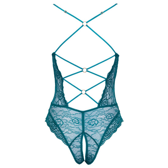 Body sem virilha da Cottelli LINGERIE totalmente confecionado em renda macia azul-petróleo.