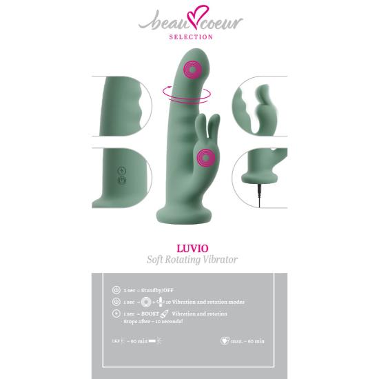 O Vibrador Rotativo Suave LUVIO da beau cœur, fácil de usar e com um design sensual, possui uma ventosa.