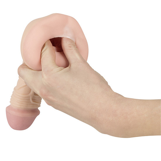 Esta réplica realista de um pénis com glande grande e inchada que funciona como uma luva prática para estimulações alucinantes ou como uma extensão do pénis que o torna mais longo e mais grosso!