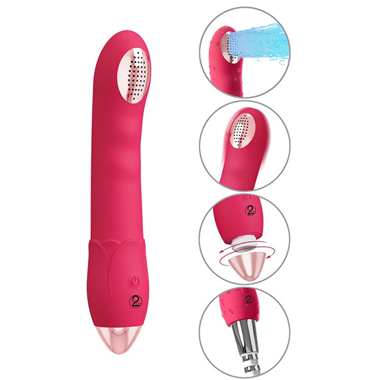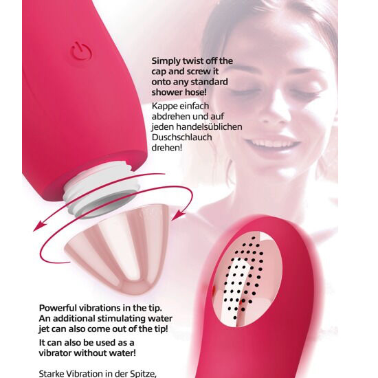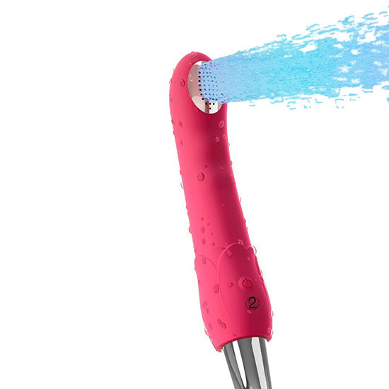 Os 10 modos de vibração podem ser facilmente controlados com o toque de um botão no brinquedo. O bico de jato de água também está localizado na cabeça. A tampa na extremidade do vibrador pode ser desrosqueada para que ele possa ser rosqueado em uma mangueira de chuveiro – para uma diversão molhada no chuveiro.