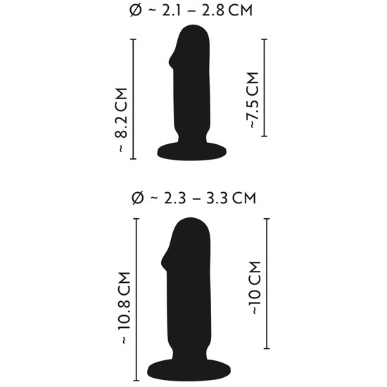 Cada plug flexível possui uma glande de formato realista e uma grande ventosa, o que significa que pode ser usado com segurança (por longos períodos de tempo) sem escorregar. Os plugs também são perfeitos para diversão com as mãos livres.