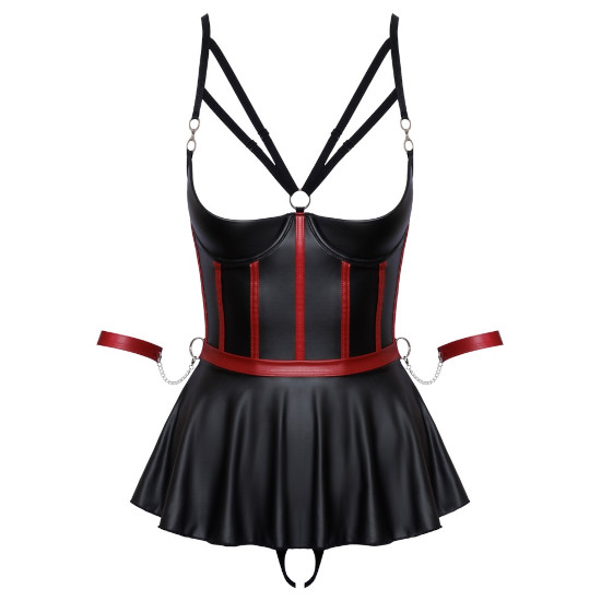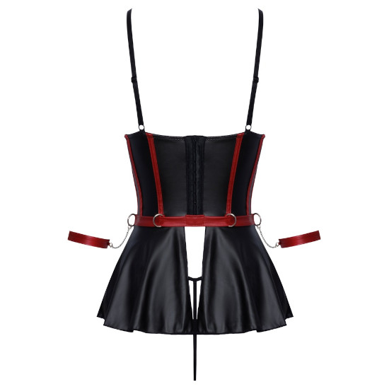 Sutiã longline levantado com babado, tanga sem virilha e 2 punhos em conjunto da Cottelli BONDAGE.