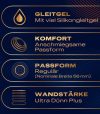 Os preservativos extremamente finos e sem látex, Intensity da Durex, são feitos de nitrilo para uma transferência intensa de calor corporal e a sensação de que o utilizador consegue sentir apenas o parceiro e nada mais. São revestidos com muito lubrificante à base de silicone. Preservativos direitos, transparentes e com extremidades em forma de bico.