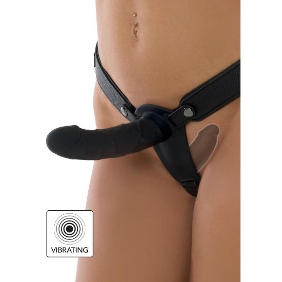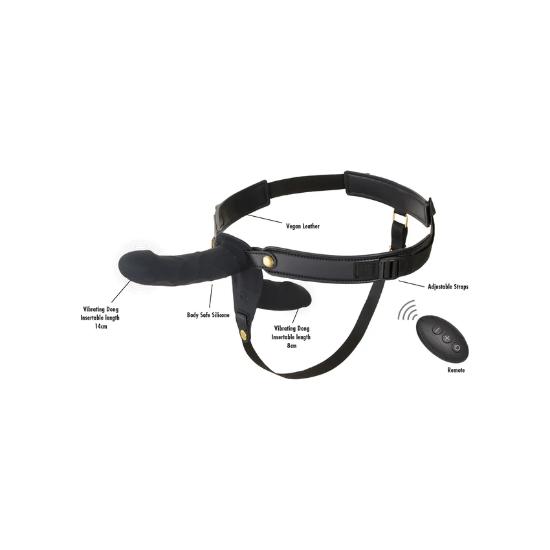 Confiança, controlo e satisfação máxima; é isso que o Strap-On Vibratório Duplo INFERNO oferece.