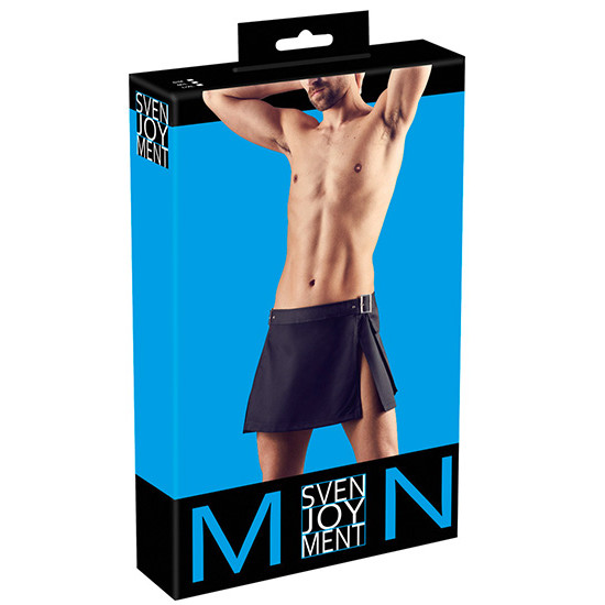 Saia curta de homem estilo gladiador feita de material tecido proeminente.