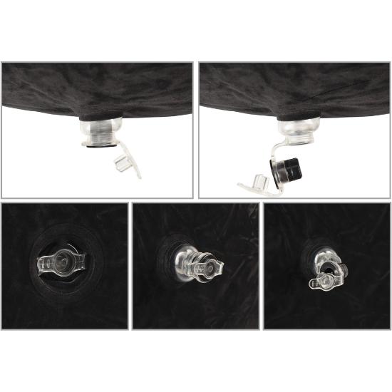Após a diversão, a textura aveludada e macia pode ser facilmente limpa e o ar pode ser libertado rapidamente, graças à válvula extra – o que significa que a almofada pode ser dobrada, ficando muito pequena e discreta.