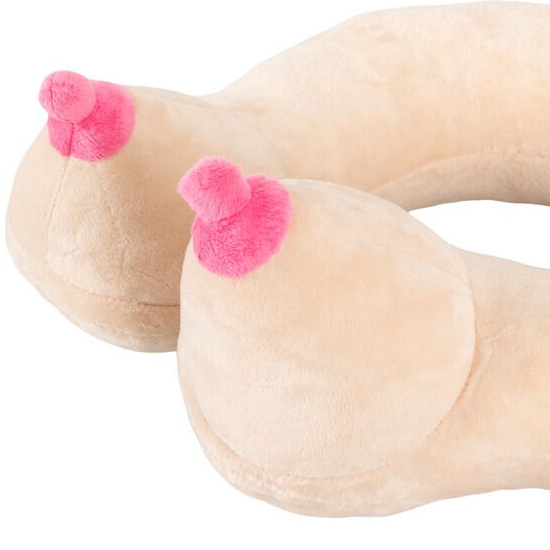 Esta almofada de pescoço maravilhosamente firme e perfeitamente curvada possui seios grandes. A almofada possui uma capa de pelúcia macia e aveludada.