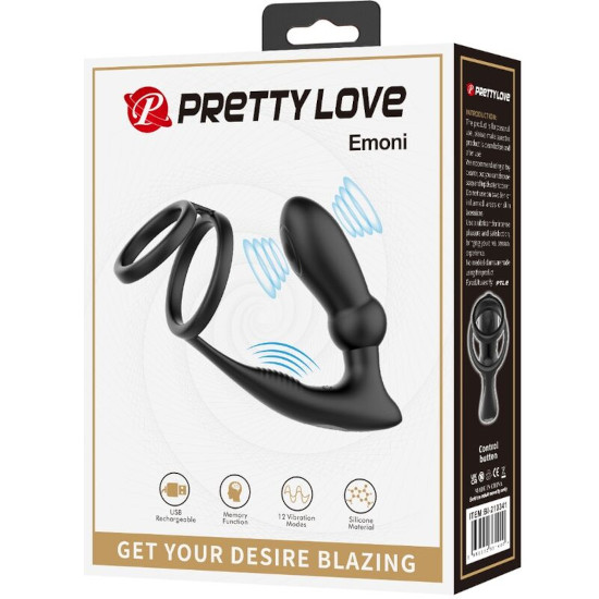 Este anel peniano com plug anal é uma combinação de anel peniano e escrotal com um plug anal vibratório firmemente ligado.