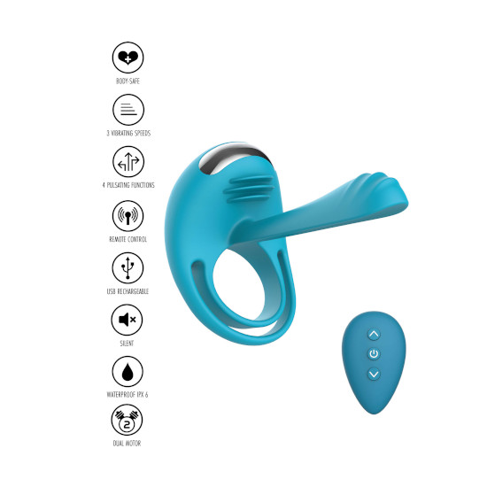 Fabricado em silicone 100% puro e plástico ABS, possui 3 velocidades de vibração, 4 funções pulsantes e um comando à distância para diversão com as mãos livres.
