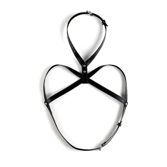 Arnês peitoral feminino totalmente ajustável em couro vegano.
