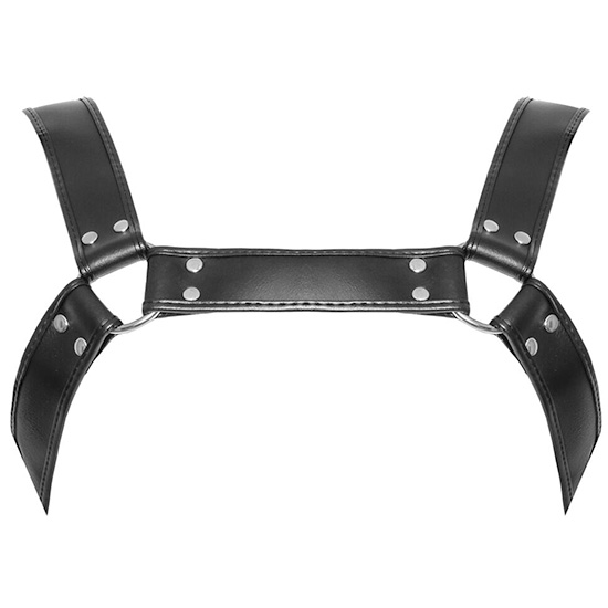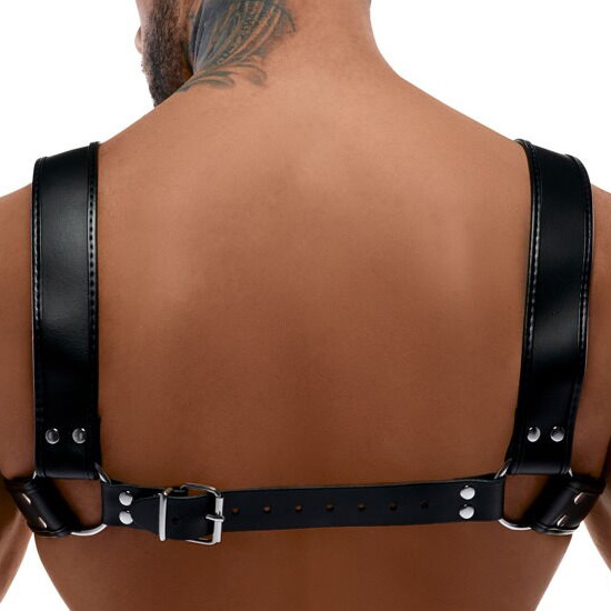 Arnês em Couro Preto para o Peito
