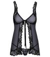O babydoll é feito de powernet delicado e linda renda.