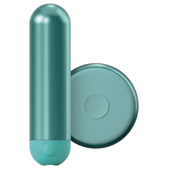 A bala vibratória suave e aveludada, Mini Chroma da JimmyJane, vem com um comando à distância.