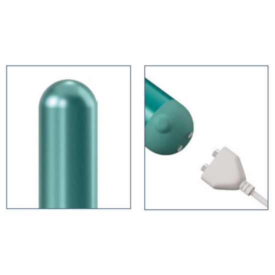 Comprimento total 7,8 cm, Ø 2 cm. Silicone, alumínio.