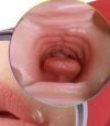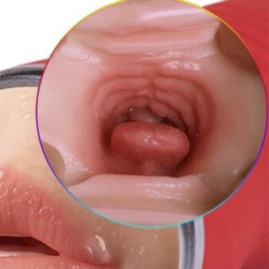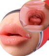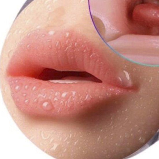 Masturbador duplo realista, com 2 cavidades húmidas, um lado uma boca sedutora, do outro uma vagina excitante.
