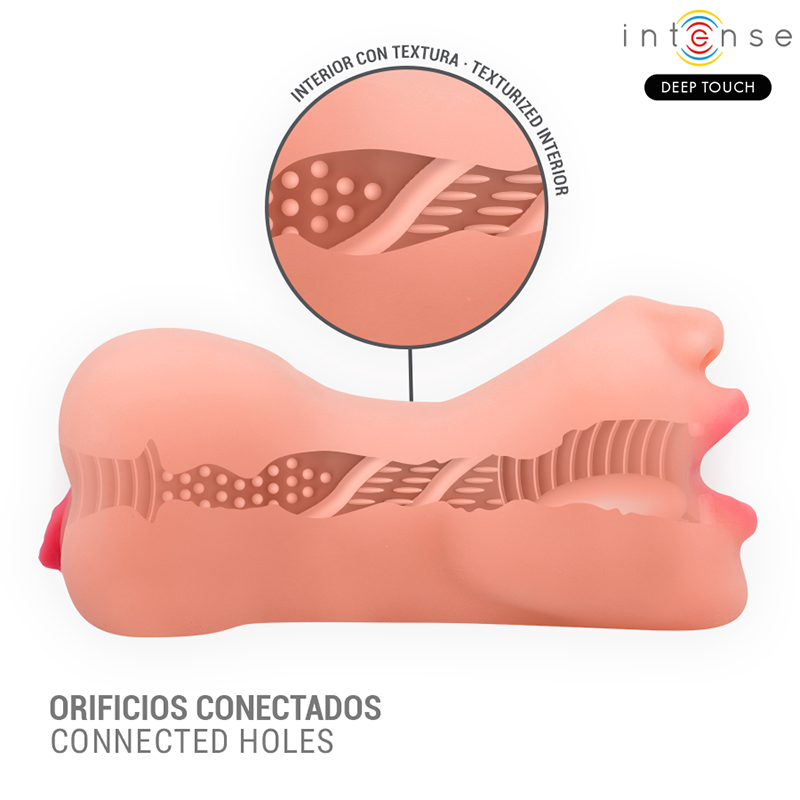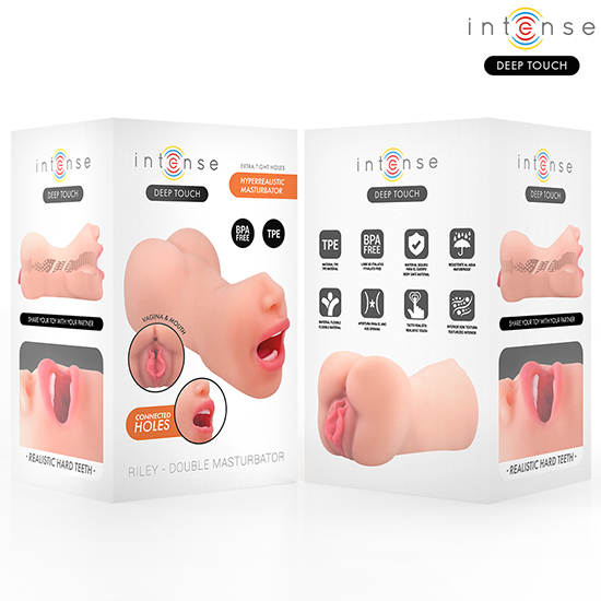 Experimente uma sensação intensa, realista e totalmente imersiva com o masturbador Riley Double Mouth & Vagina da Intense , projetado para oferecer o máximo prazer a cada uso.