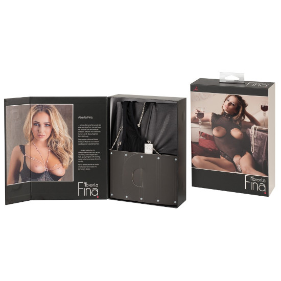 Seios e virilhas são abertos e decorados com correntes destacáveis.