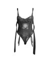 O design crotchless (virilha aberta) adiciona um detalhe ousado e sedutor, enquanto as ligas integradas fornecem um toque clássico e sofisticado que o torna ideal para combinar com meias de renda ou roupas transparentes.