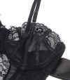 A renda preta, com detalhes intrincados, confere um ar de romance e elegância, enquanto seu design geral foi pensado para valorizar a silhueta e deixar uma impressão inesquecível.