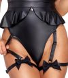 É macio e elástico para um ajuste confortável. As alças da suspensório com alças nas coxas são ajustáveis e também podem ser removidas.