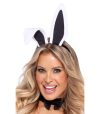 A fita para a cabeça com orelhinhas de coelho pretas e brancas completa o look sensual de coelho.