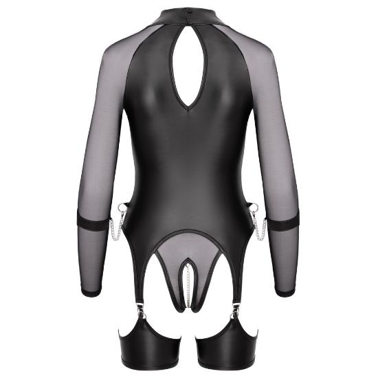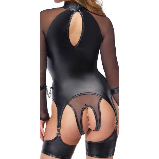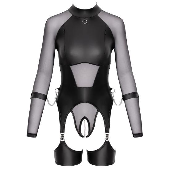 O emocionante conjunto preto da Cottelli BONDAGE contém um conjunto com um suspensório sem entrepernas e algemas macias.