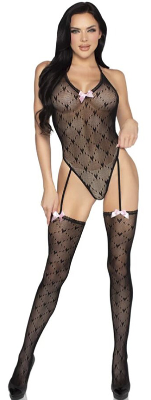 Com um design estilo tanga e meias-calças integradas, é uma opção doce e ousada para noites inesquecíveis.
