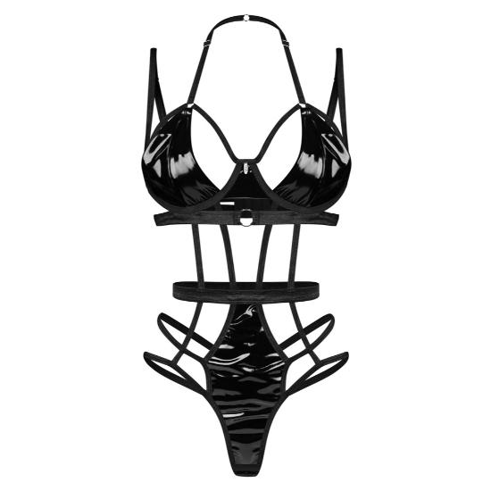 O body fio dental preto Keira Lise da Obsessive tem um design sensacional com alças finas.