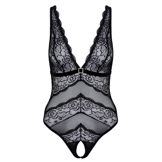 Body sem virilha da Cottelli LINGERIE em delicado mix de materiais powernet e renda floral. Com um lindo decote profundo.
