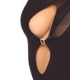 Body-tanga preto de mangas compridas, com gola alta elástica.