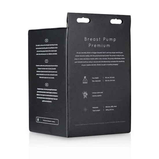 Esta bomba de sucção tem dois copos transparentes que estão fixos a uma bomba de sucção.