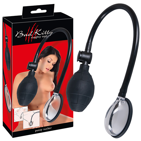 Ventosa com formato anatómico Pussy Sucker da Bad Kitty para os lábios internos. A ventosa transparente é colocada no centro de prazer e a prática bomba de vácuo com válvula de liberação é pressionada – uma visão emocionante e uma forte sensação de prazer! Adapta-se a cada vulva.
