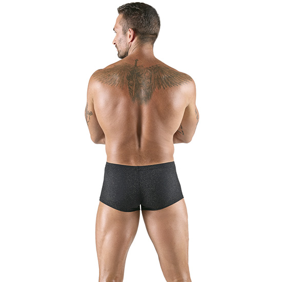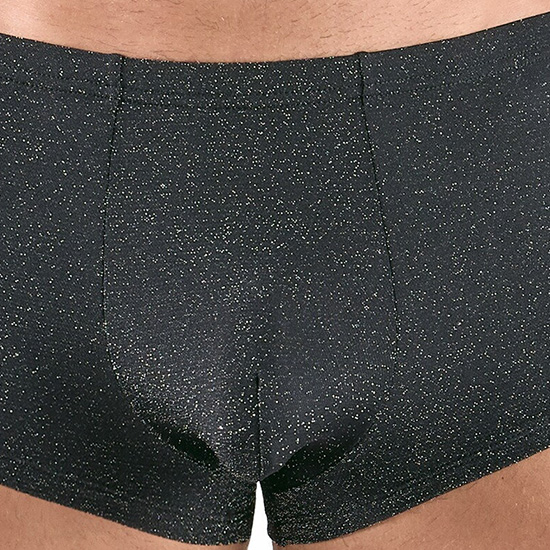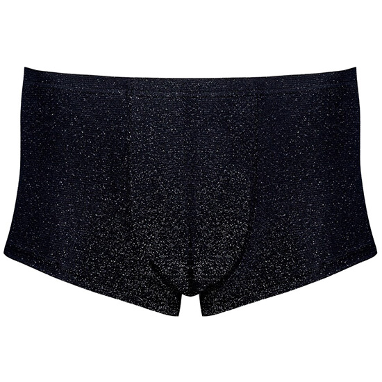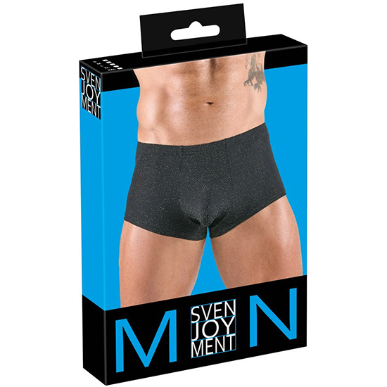 Os boxers pretos prateados da Svenjoyment, que realçam a silhueta, têm um look acetinado e ligeiramente transparente.