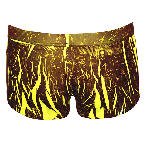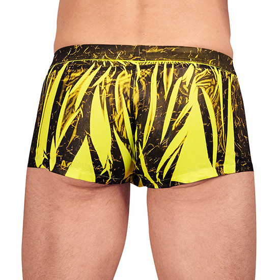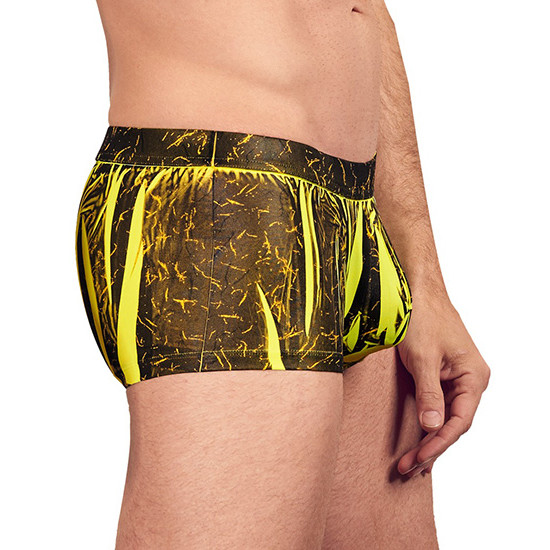 Boxers justas em amarelo neon brilhante com estampa preta.