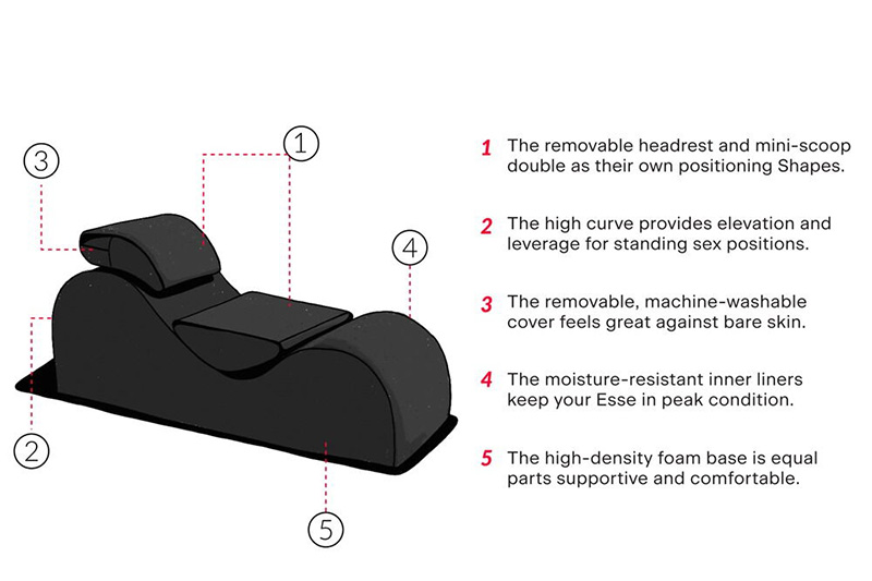 Tem um design discretamente elegante e oferece não apenas posições reclinadas confortáveis (por exemplo, durante a leitura), mas também o suporte perfeito durante o sexo em várias posições.