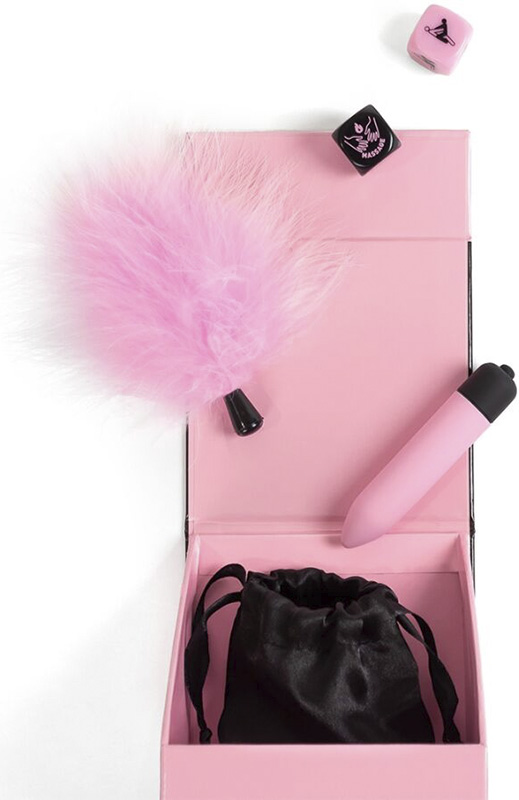 O seu conteúdo é completo e estimulante: além de experimentar vibrações deliciosas com o vibrador bala rosa, você também poderá desfrutar de carícias sedutoras com o espanador de penas rosa de toque suave e se divertir com os dois dados, cada um oferecendo opções lúdicas bem diferentes.