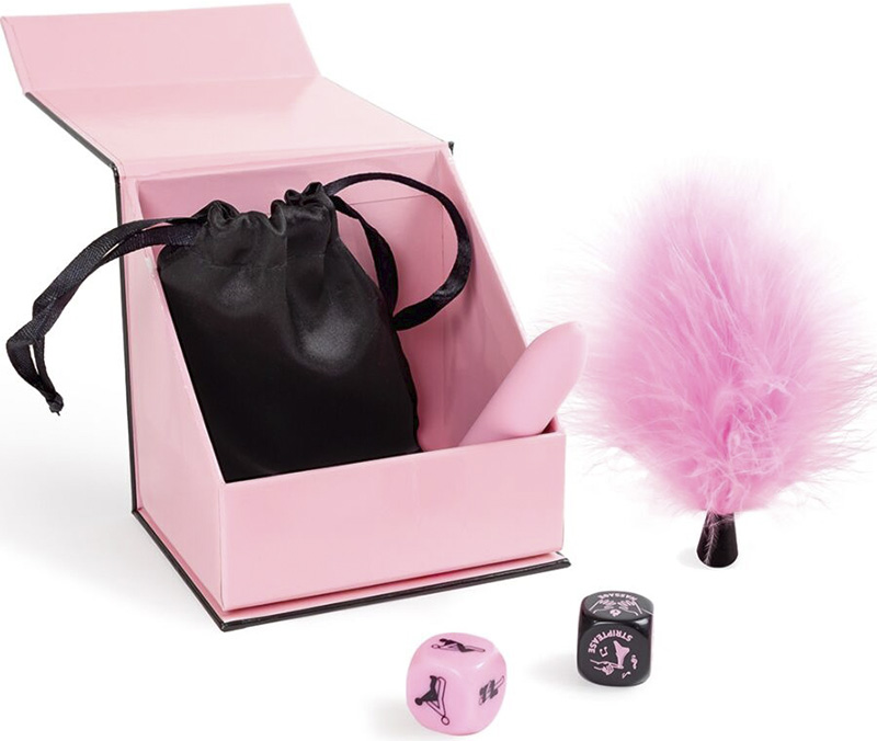 Recomendamos começar com o dado preto para criar um clima mais quente, usando-o junto com o estimulador de penas e o vibrador bala, e depois passar para uma ação mais intensa com o dado rosa. Ou simplesmente aproveite uma sessão lúdica completa apenas com o dado preto. A escolha é sua — as possibilidades são infinitas! O kit também inclui uma bolsinha de cetim preta, perfeita para guardar todos os itens discretamente na sua mesa de cabeceira ou onde preferir.