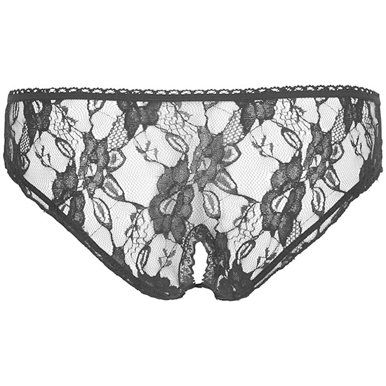 Calcinha Aberta em Renda Floral Preta