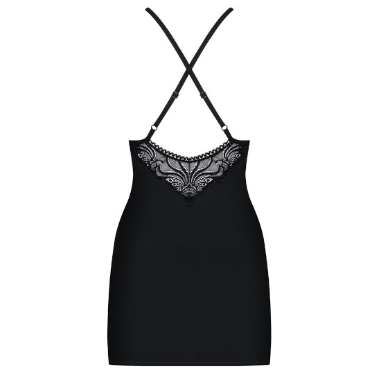 Vestido que valoriza a figura com inserções de renda na frente e nas costas.
