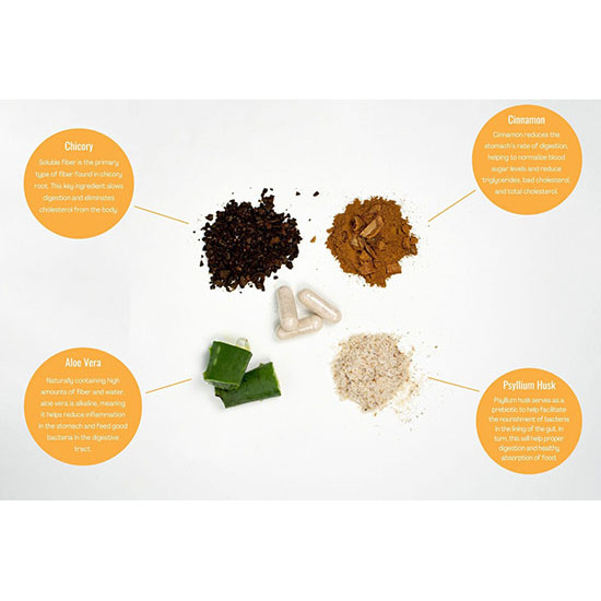 Projetado com uma mistura proprietária de casca de psyllium, canela, chicória e aloe vera