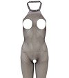 O fato inteiro macio e sem virilha da NO:XQSE é feito de rede preta. É sem costas – decote halter elástico feito de renda.
