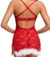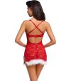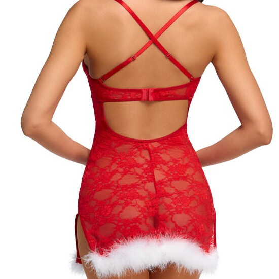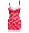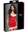 A camisa justa X-Mas da Cottelli LINGERIE é confecionada em delicada renda vermelha. Ela é macia e elástica para um ajuste muito confortável. Delicadas penas brancas decoram os seios e a saia.