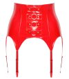 O cinto de ligas extra largo da Black Level é feito inteiramente de vinil vermelho brilhante. Existem 4 anéis prateados integrados para decoração.