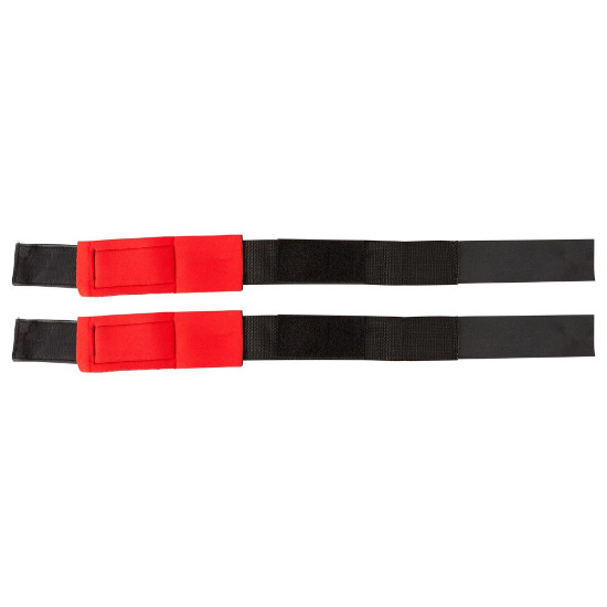 2 Cintos ajustáveis que prendem os pulsos às coxas.