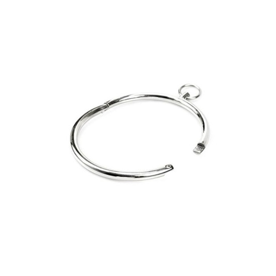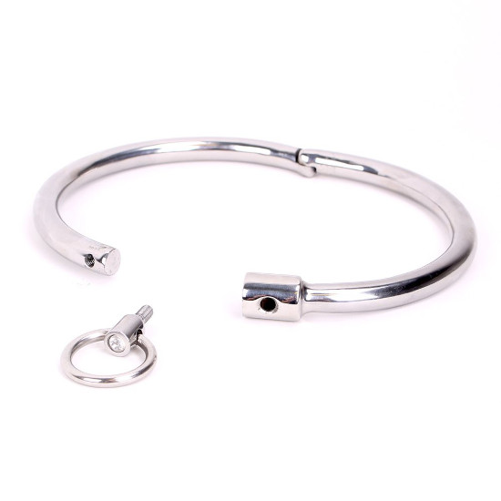 O aço durável e pesado ajusta-se com segurança ao pescoço da sua submissa, mantendo-a no lugar.